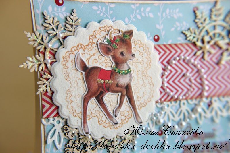 У меня чипборд - снежинки и ёлочная игрушка (она же ОЭ) + глиттер, стразы и брадс